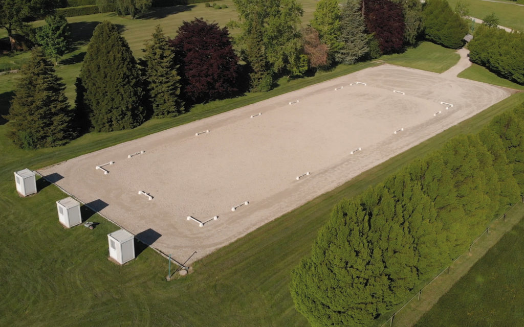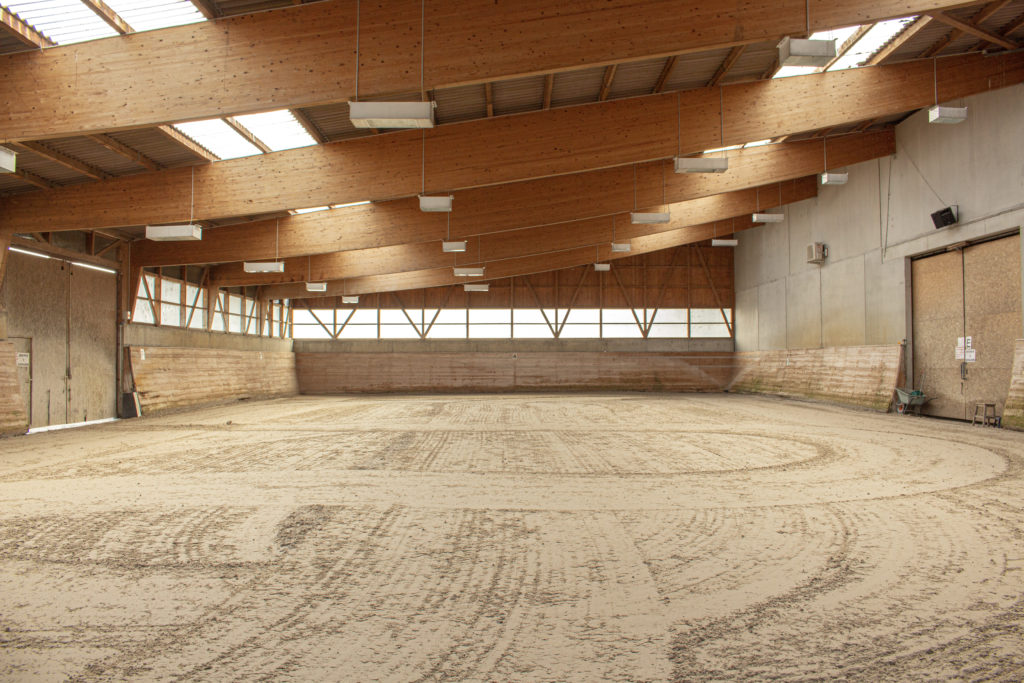 D’une surface de plus de 2600m² (66x40m), il s’agit d’un des plus grands manèges indoor de la région. Sable fibré de qualité.